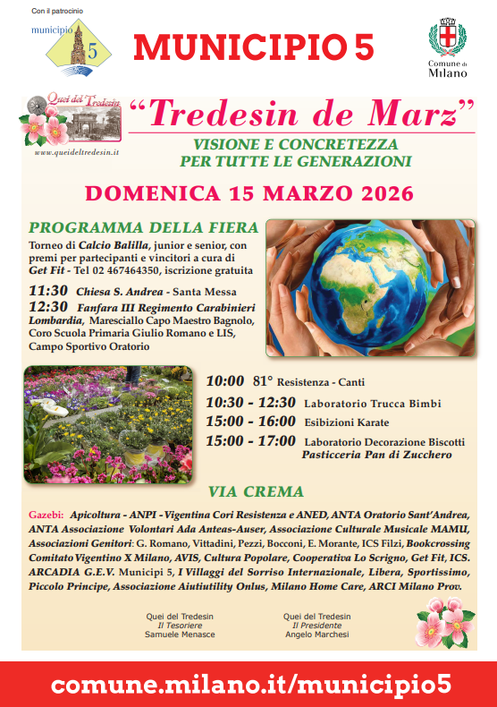 Today, the Tredesìn de Marz is often accompanied by the Festa dei Fiori, a fair held in the streets of Via Crema and surrounding areas near Porta Romana. This fair, with its colorful flower stalls and various activities, is a celebration of the transition from winter to spring. It is also believed that cutting children’s hair on this day will make it grow thicker and stronger.