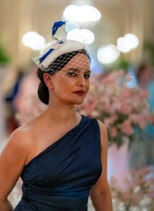 During our London shoot, Sara selected two stunning hats for me to wear: one in striking blue and white and the other in bold cerise pink. The moment I put them on, I felt transformed—elegant, empowered, and effortlessly glamorous. The attention to detail in her work is undeniable, from the rich satin textures to the delicate veiling that adds a touch of mystery and allure.